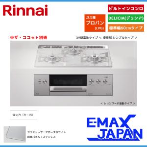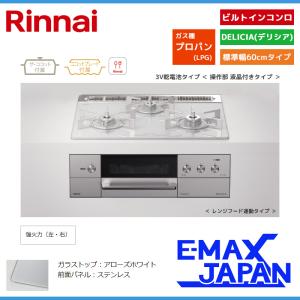 - リンナイ ビルトインコンロ DELICIA デリシア 3口 3V乾電池タイプ プロパンガス 60cm LPG アローズホワイト RHS31W31E14RCASTW-LPG