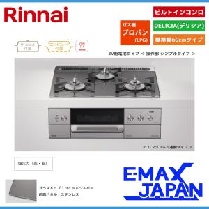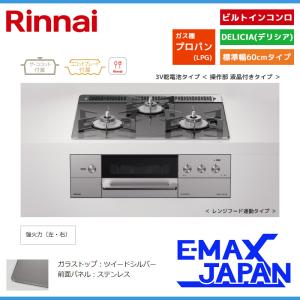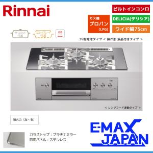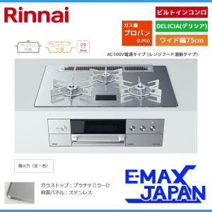 - リンナイ ビルトインコンロ DELICIA デリシア 3口 3V乾電池タイプ プロパンガス 75cm LPG プラチナミラーD RHS71W31E13RCASTW-LPG