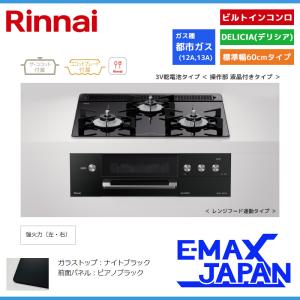 - リンナイ ビルトインコンロ DELICIA デリシア 3口 3V乾電池タイプ 都市ガス 13A 60cm クリスタルブラック RHS31W31E11RCABW-13A