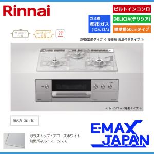 - リンナイ ビルトインコンロ DELICIA デリシア 3口 3V乾電池タイプ 都市ガス 13A 60cm アローズホワイト RHS31W31E14RCASTW-13A