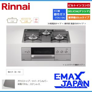 - リンナイ ビルトインコンロ DELICIA デリシア 3口 3V乾電池タイプ 都市ガス 13A 60cm ツイードシルバー RHS31W31E15RCASTW-13A