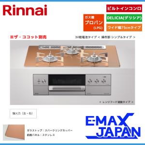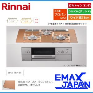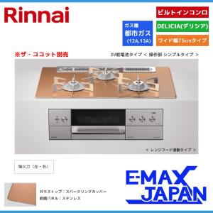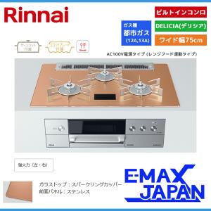 - リンナイ ビルトインコンロ DELICIA デリシア 3口 3V乾電池タイプ 都市ガス 13A 75cm スパークリングカッパー RHS71W31E12RCASTW-13A