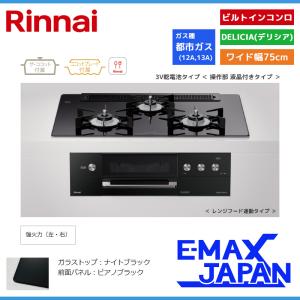 - リンナイ ビルトインコンロ DELICIA デリシア 3口 3V乾電池タイプ 都市ガス 13A 75cm クリスタルブラック RHS71W31E11RCABW-13A