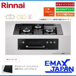 - リンナイ ビルトインコンロ DELICIA デリシア 3口 3V乾電池タイプ プロパンガス 75cm LPG クリスタルブラック RHS71W31E11RCABW-LPG