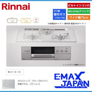- リンナイ ビルトインコンロ DELICIA デリシア 3口 3V乾電池タイプ 都市ガス 13A 75cm アローズホワイト RHS71W31E14RCASTW-13A