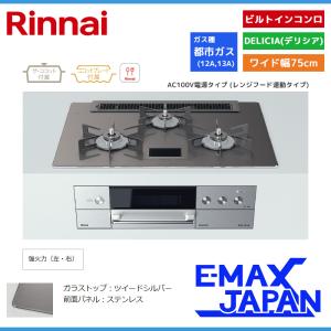 - リンナイ ビルトインコンロ DELICIA デリシア 3口 AC100V電源タイプ 都市ガス 13A 75cm プラチナミラーD RHS71W31E13VCASTW-13A