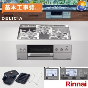 - 交換工事費込セット ビルトインコンロ リンナイ RHS31W31E15RCSTW 13A DELICIA デリシア プラチナミラー 都市ガス