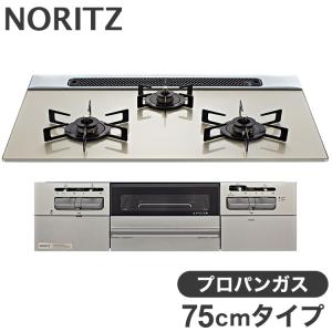 - ビルトインガスコンロ 3口 ノーリツ N3WV7RWTP2SI LPG プロパンガス Fami 3口 75cmタイプ 両面焼き ムーンシルバーガラストップ