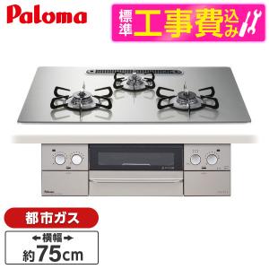 - パロマ PD-863WS-U75GH-13A 標準設置工事セット シャインシルバー FACEIS ビルトインガスコンロ(都市ガス用・両側強火タイプ・幅75cm)