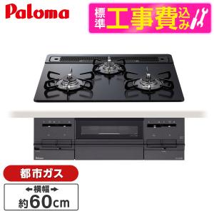 - パロマ PD-863WS-60CK-13A 標準設置工事セット クリアパールブラック FACEIS ビルトインガスコンロ(都市ガス用・両側強火タイプ・幅60cm)