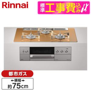 - Rinnai RHS71W35T2DGAVW-13A 標準設置工事セット シルバー マイトーン ビルトインガスコンロ (都市ガス用・3口・左右強火力タイプ・幅75cm)