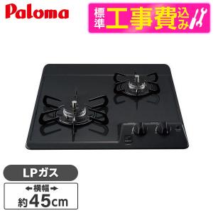 - パロマ PD-202B-LP 標準設置工事セット ニュートラルグレー コンパクトキッチン ビルトインガスコンロ(プロパンガス用・2口・幅45cm)