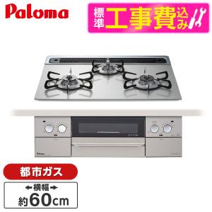 - パロマ PD-863WS-60GH-13A 標準設置工事セット シャインシルバー FACEIS ビルトインガスコンロ(都市ガス用・両側強火タイプ・幅60cm)