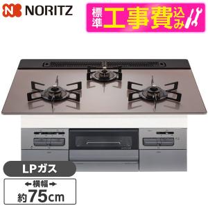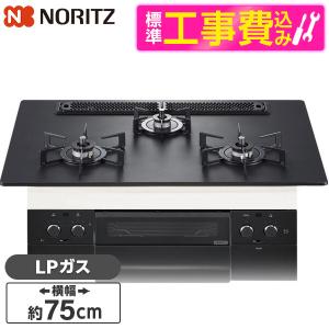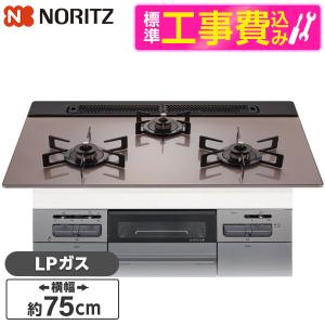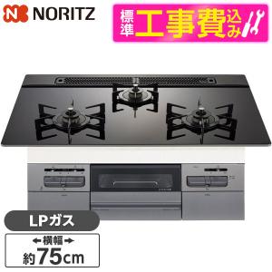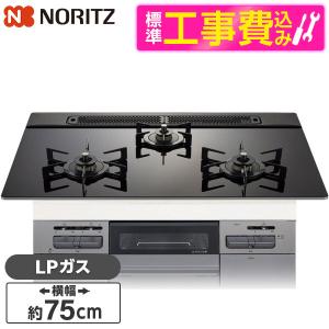 - NORITZ N3WV7RWAP3SIEC-LP 標準設置工事セット Mikke (ミッケ) ビルトインガスコンロ (プロパンガス用・3口・両側強火タイプ・幅75cm)