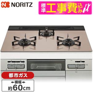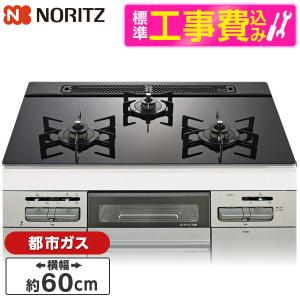 - NORITZ N3WV6RWAP1SIEC-13A 標準設置工事セット Mikke (ミッケ) ビルトインガスコンロ (都市ガス用・3口・両側強火タイプ・幅60cm)