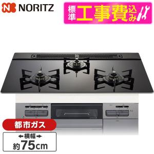 - NORITZ N3WV7RWAP3SIEC-13A 標準設置工事セット Mikke (ミッケ) ビルトインガスコンロ (都市ガス用・3口・両側強火タイプ・幅75cm)