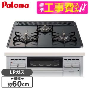- パロマ PD-N36WS-LP 標準設置工事セット ニュートラルグレー スタンダードトップ ビルトインガスコンロ(プロパンガス用・3口・両側火力・幅60cm)