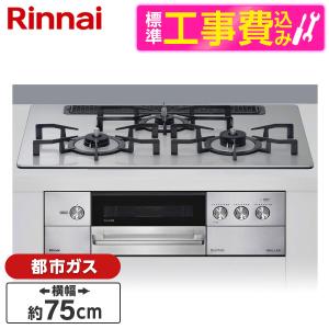 - Rinnai RHS71W34ALRSR-13A 標準設置工事セット シルバー グリレ ビルトインガスコンロ(都市ガス用・右強火力・3口・75cm)