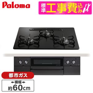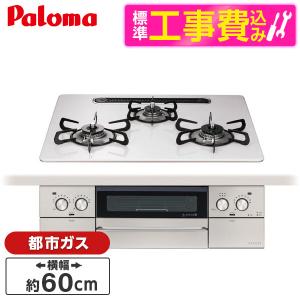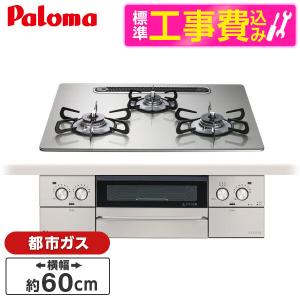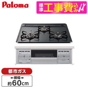 - パロマ PD-N36AS-13A 標準設置工事セット ニュートラルグレー スタンダードトップ ビルトインガスコンロ(都市ガス用・3口・両側火力・幅60cm)