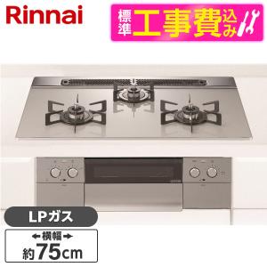 - Rinnai RHS71W34ALRSR-LP 標準設置工事セット シルバー グリレ ビルトインガスコンロ(プロパンガス用・右強火力・3口・75cm)