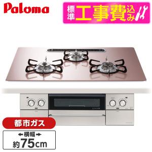- パロマ PD-202H-13A 標準設置工事セット ナチュラルホワイト ビルトインコンロ(都市ガス用・2口・45cm)