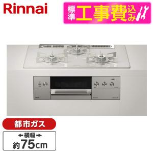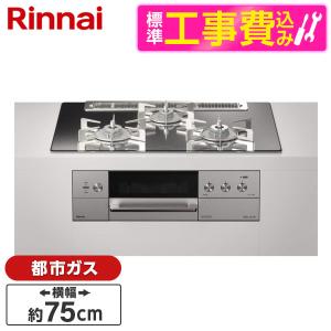 - Rinnai RHS71W30E15RASTW-13A 標準設置工事セット ツイードシルバー DELICIA ビルトインガスコンロ (都市ガス用・両側強火力・幅75cm)
