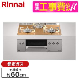 - Rinnai RS31W35P43DGAVW-13A 標準設置工事セット サクラグレージュ Mytone ビルトインガスコンロ (都市ガス用・両側強火力・幅60cm)