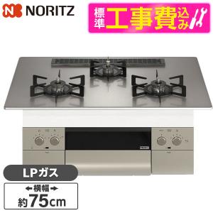 - NORITZ N3WU2PWASQSTEC-LP 標準設置工事セット Orche S-FLAT ビルトインガスコンロ (プロパンガス用 3口 両側強火力 75cmタイプ)
