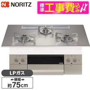 - NORITZ N3WU2PWASQSTESC-LP 標準設置工事セット Orche S-FLAT ビルトインガスコンロ (プロパンガス用 3口 両側強火力 75cmタイプ)