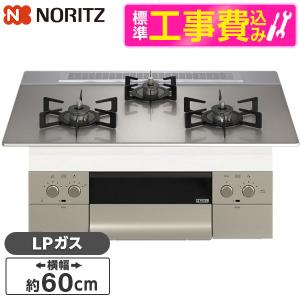 - NORITZ N3WU3PWASQSTEC-LP 標準設置工事セット Orche FLAT ビルトインガスコンロ (プロパンガス用 3口 両側強火力 60cmタイプ)