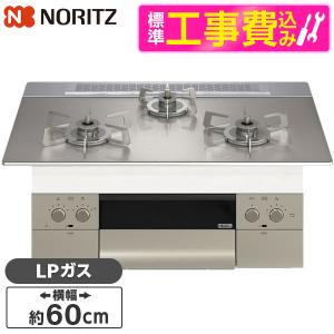 - NORITZ N3WU3PWASKSTESC-LP 標準設置工事セット Orche FLAT ビルトインガスコンロ (プロパンガス用 3口 両側強火力 60cmタイプ)