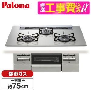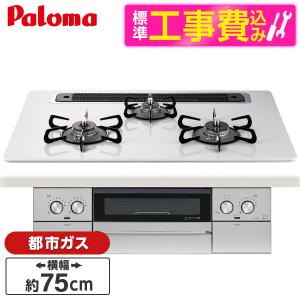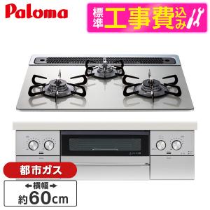 - パロマ PD-N36AS-LP 標準設置工事セット ニュートラルグレー スタンダードトップ ビルトインガスコンロ(プロパンガス用・3口・両側火力・幅60cm)