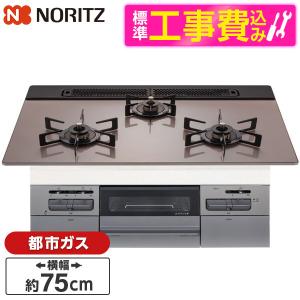 - NORITZ N3WV7RWAP1SIC-13A 標準設置工事セット Mikke (ミッケ) ビルトインガスコンロ (都市ガス用・3口・両側強火タイプ・幅75cm)
