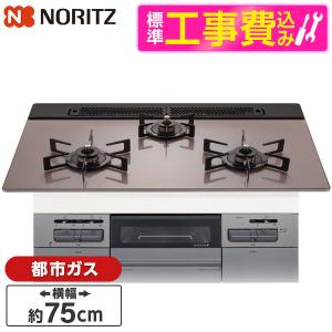 - NORITZ N3WV7RWTP1-13A 標準設置工事セット Fami (ファミ) ビルトインガスコンロ (都市ガス用・3口・両側強火タイプ・幅75cm)