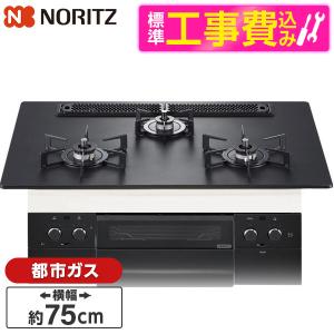 - NORITZ N3WU4PWAAFBAEC-13A 標準設置工事セット Orche (オルシェ) ビルトインガスコンロ (都市ガス用・3口・両側強火タイプ・幅75cm)