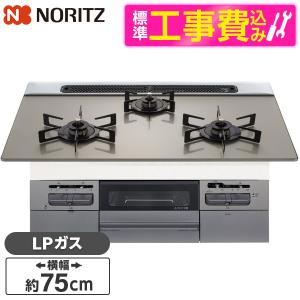 - NORITZ N3WV7RWAP3SIEC-LP 標準設置工事セット Mikke (ミッケ) ビルトインガスコンロ (プロパンガス用・3口・両側強火タイプ・幅75cm)