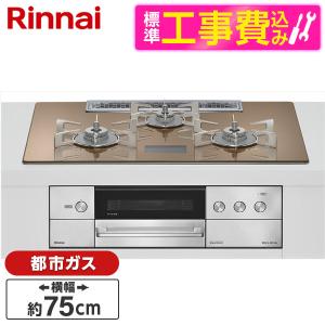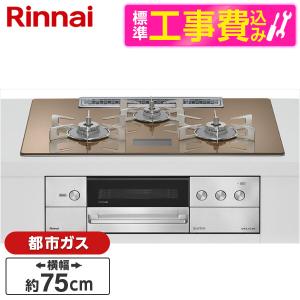 - Rinnai RHS72W38M11RNBW-13A 標準設置工事セット ナイトブラック DELICIA ビルトインガスコンロ(都市ガス用・両側強火タイプ・3口・75cm)
