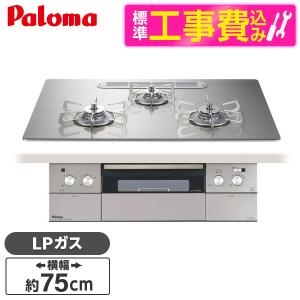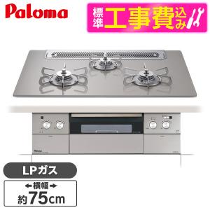 - パロマ PD-863WS-U75GH-LP 標準設置工事セット シャインシルバー FACEIS ビルトインガスコンロ(プロパンガス用・両側強火タイプ・幅75cm)