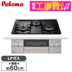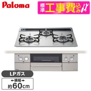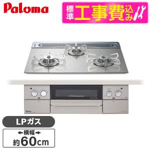 - パロマ PD-963WT-U60GH-LP 標準設置工事セット シャインシルバー CREA ビルトインガスコンロ(プロパンガス用・両側強火タイプ・幅60cm)