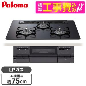 - パロマ PD-863WS-75CK-LP 標準設置工事セット クリアパールブラック FACEIS ビルトインガスコンロ(プロパンガス用・両側強火タイプ・幅75cm)
