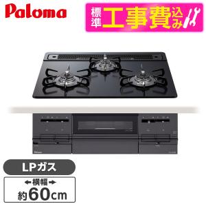 - パロマ PD-863WS-60CK-LP 標準設置工事セット クリアパールブラック FACEIS ビルトインガスコンロ(プロパンガス用・両側強火タイプ・幅60cm)