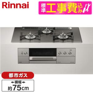 - Rinnai RHS31W30E15RCASTW-13A 標準設置工事セット ツイードシルバー DELICIA ビルトインガスコンロ (都市ガス用・両側強火力・幅60cm)