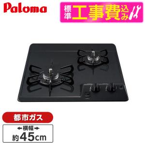 - パロマ PD-202B-13A 標準設置工事セット ニュートラルグレー コンパクトキッチン ビルトインガスコンロ(都市ガス用・2口・幅45cm)