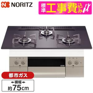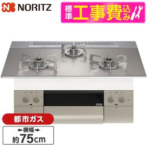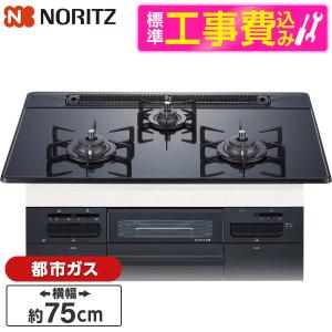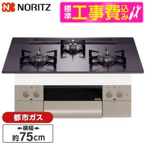 - NORITZ N3WT7RWAP1C-13A 標準設置工事セット Fami (ファミ) オートタイプ ビルトインガスコンロ(都市ガス用・3口・両側強火タイプ・幅75cm)
