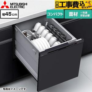 - 工事費込みセット EW-45R3シリーズ 食器洗い乾燥機 コンパクトタイプ 浅型 三菱 EW-45R3BM ドア面材型 ブラック