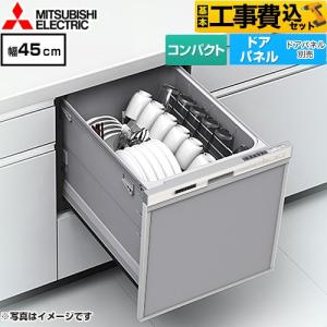 - 工事費込みセット EW-45M3シリーズ 食器洗い乾燥機 コンパクトタイプ 浅型 三菱 EW-45M3SM ドア面材型 ヘアラインシルバー