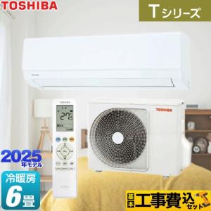 - 工事費込みセット Tシリーズ ルームエアコン 冷房/暖房:6畳程度 東芝 RAS-2215T-W 室内機:高さ250mmコンパクトタイプ ホワイト
