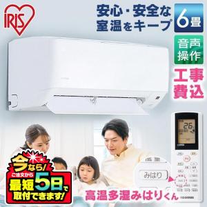 - エアコン 6畳 工事費込 6畳用 工事費込み アイリスオーヤマ クーラー 2.2kW 音声操作 IAF-2206GV ホワイト 室内機 室外機 リモコン