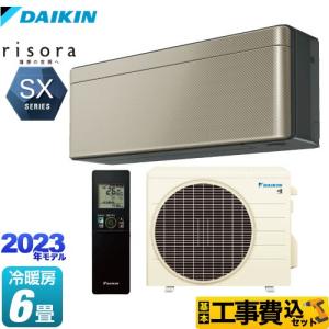 - 工事費込みセット risora(リソラ) SXシリーズ ルームエアコン 冷房/暖房:6畳程度 ダイキン S223ATSS-N ツイルゴールド 本体色:ダークグレータイプ
