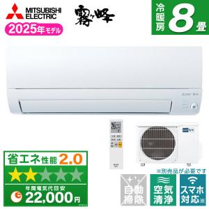 - エアコン 8畳用 工事費込み 三菱電機 2.5kW 霧ヶ峰 Sシリーズ 2025年モデル MSZ-S2525-W-SET MSZ-S2525-W-ko1
